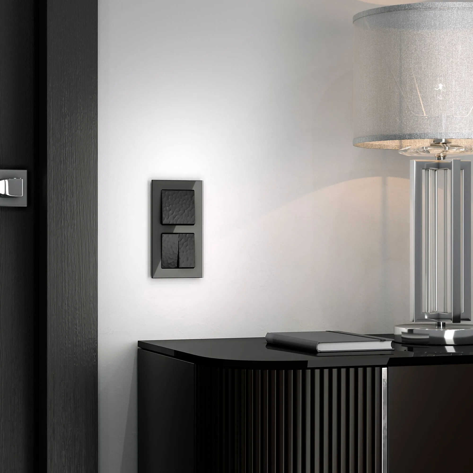 Выключатель двухклавишный проходной с подсветкой Hammer (черный) W1222108